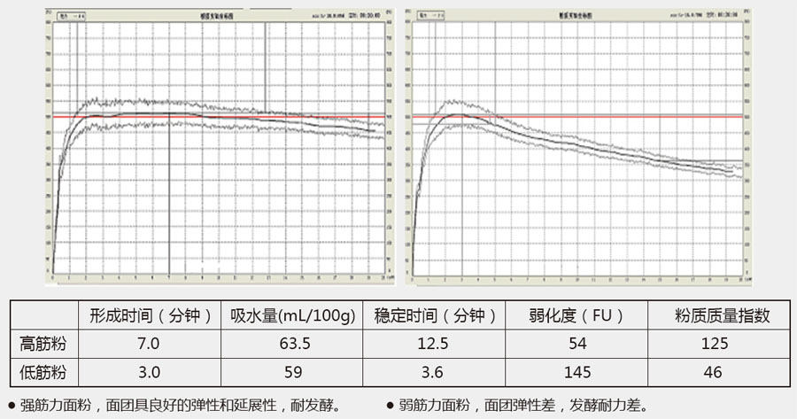 ⑴ 应用于标准粉质实验,评价面团的吸水能力,并由形成时间、稳定时间、弱化度、粉质质量指数等参数评价面团流变学特性。